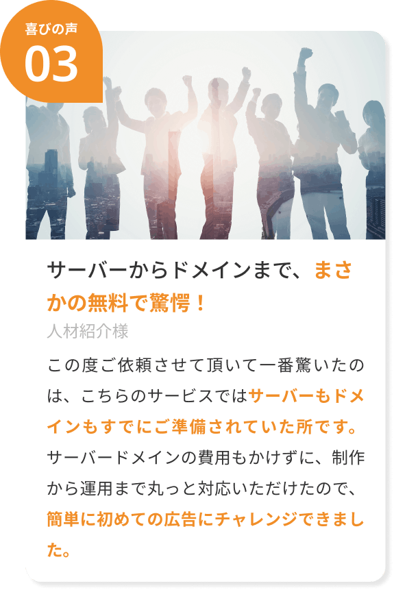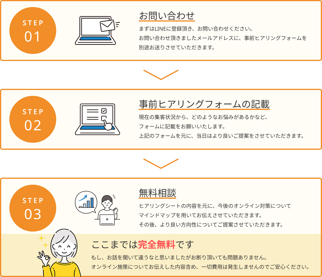 私たちは広告費の代償でサービス内容を大幅に変えたりしません。お客様に応じて最適なプランをご提案します。