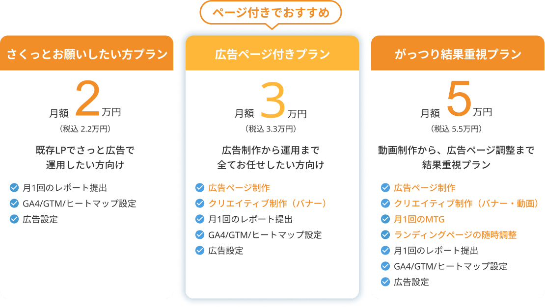 低価格の広告運用代行サービス始めたの方でもまだ広告にそこまでお金を出せない企業様でも手が届きやすさを実現しております
